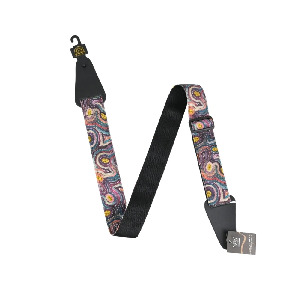 Bush Potato Dreaming Aboriginal Art fabric sewn on 50mm webbing.
