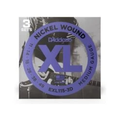 EXL115 is the popular choice for players who prefer moderate flexibility and a full, beefy tone. XL Nickel Wound, D’Addario’s most popular electric guitar strings, are precision wound with nickelplated steel onto a carefully drawn, hexagonally shaped, high carbon steel core. The result, strings with long lasting, distinctive bright tone and excellent intonation, is ideal for the widest variety of guitars and musical styles. String Gauges: Plain Steel .011, .014, .018, Nickel Wound .028, .038, .049