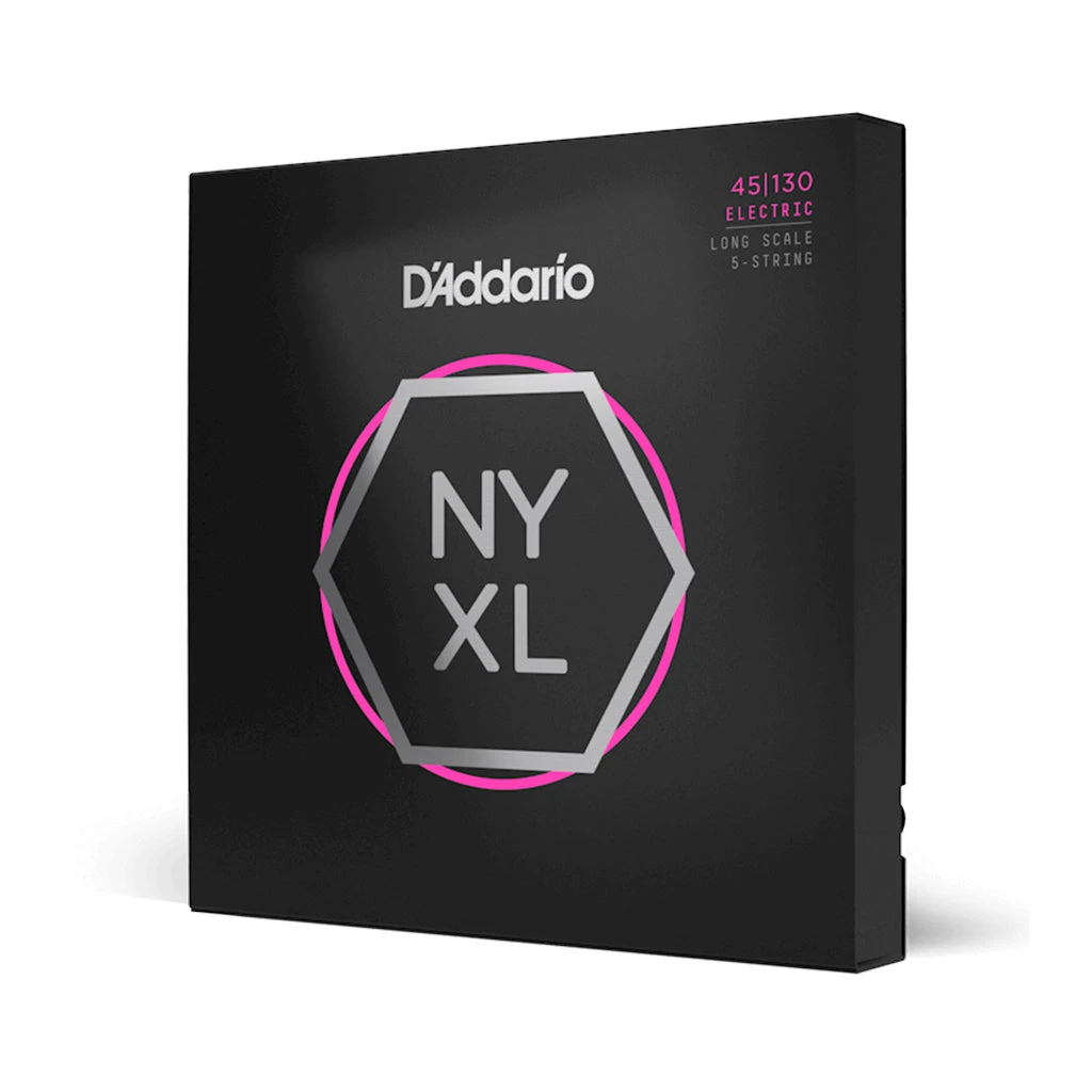 NYXL45130 is a regular light gauge string set for 5-String, long scale basses. The high carbon steel used in NYXL strings offers higher break strength, enhanced tuning stability, and accentuated mid-range