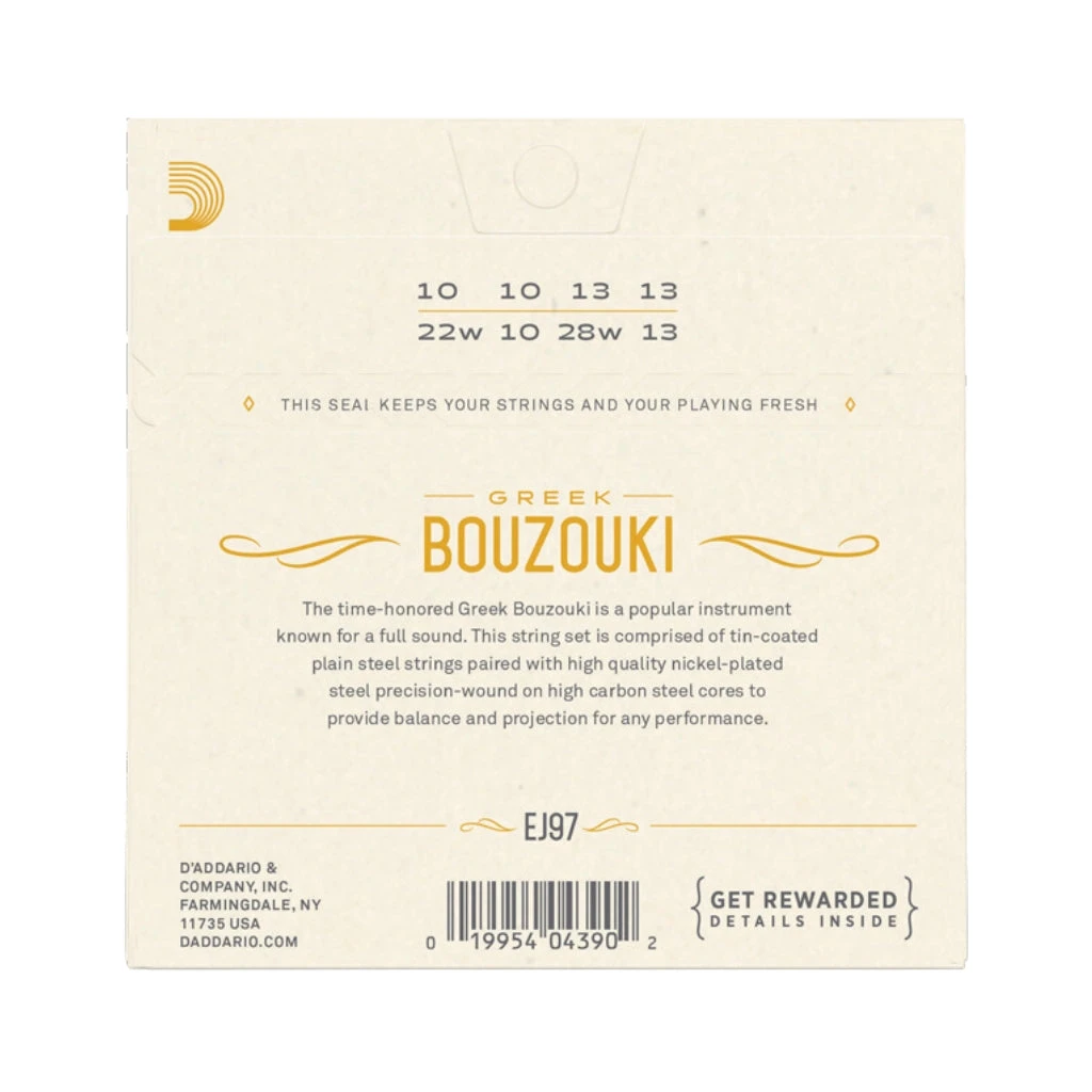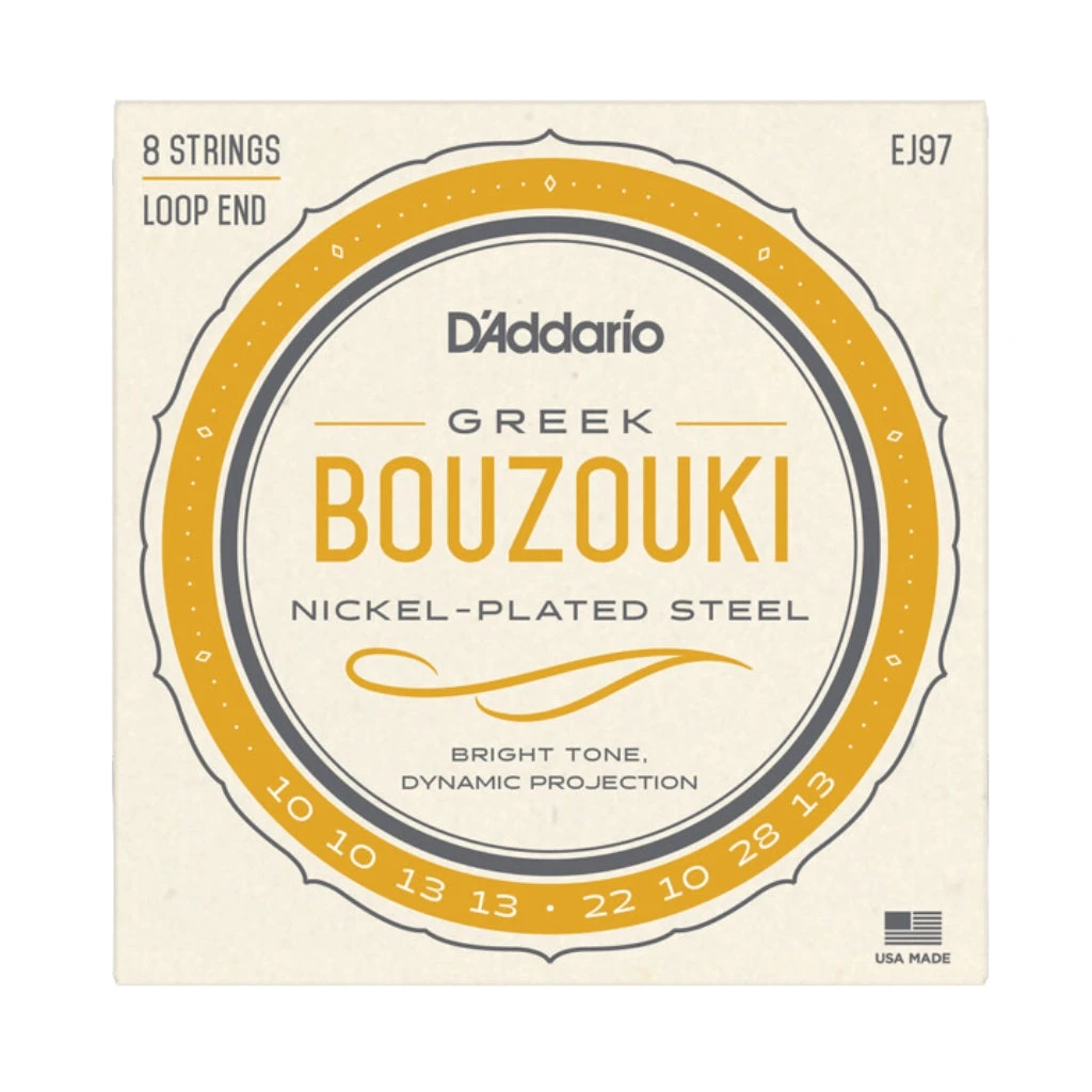The Daddario EJ97 is a nickel plated steel wound string set optimized for use with Greek Bouzouki, tuned CFAD. D’Addario’s portfolio of products designed specifically for World Instruments is based on research and product testing with instrument builders, educators, and professional musicians.