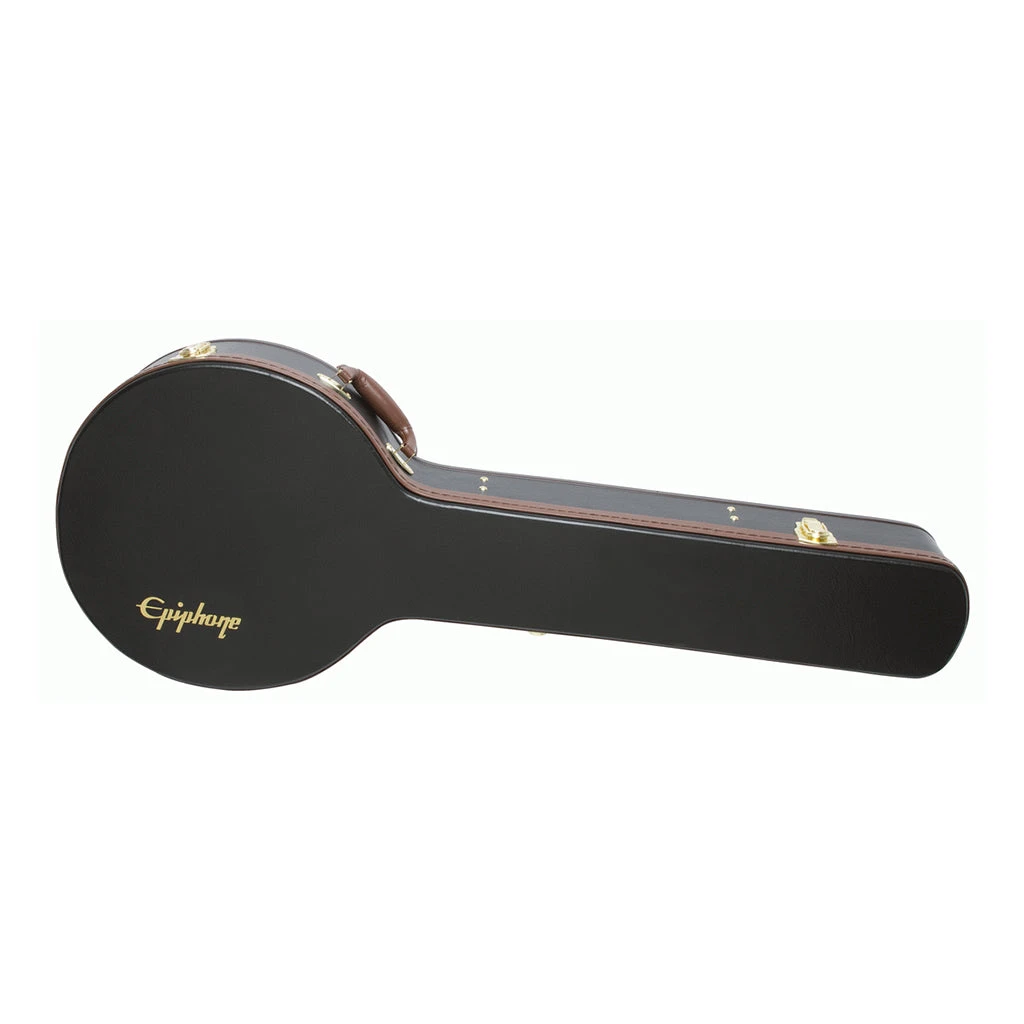 Epiphone 5 String Banjo Hard Case. Epiphone Hard Cases are the best way to protect your instrument while traveling! On the outside, the smooth simulated leather vinyl exterior has the classic Epiphone logo. Inside, the plush interior has plenty of padding along with a handy pocket for your picks and guitar strap. Featuring a premium padded handle and heavy duty latches.