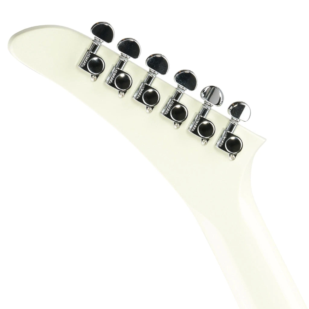It has traveled to stages around the world, but the ‘70s icon is back to explore a new generation of players. Featuring a pair of ‘70s tribute humbuckers, hand wired with orange drop capacitors, this Explorer begs to be played loud. With its classic white finish, bound rosewood fingerboard, black speed knobs and chrome hardware, it looks as iconic as the generation of music it helped create.