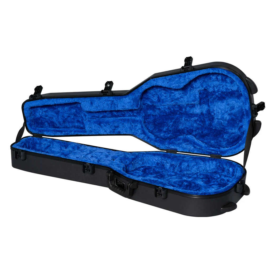 Inspired by the design of vintage 70s-era Gibson “chainsaw” cases, Gibson Deluxe Protector Series hardshell cases feature rugged polyethylene shells and modern improvements like TSA-approved locks, ergonomic soft-grip handles, and black powder-coated hardware. Protect your instrument with a case that delivers both vintage-inspired style and modern technology.