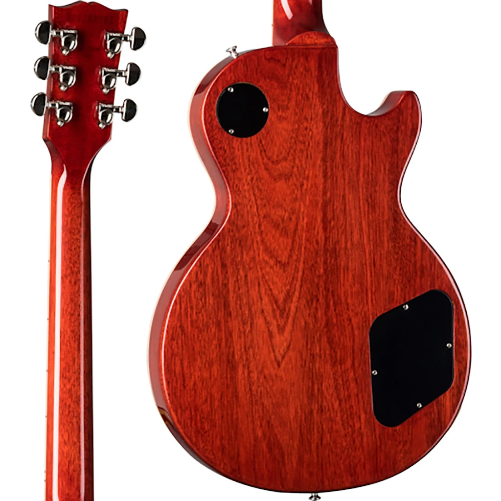 The new Les Paul Standard returns to the classic design that made it relevant, played and loved — shaping sound across generations and genres of music. It pays tribute to Gibsons Golden Era of innovation and brings authenticity back to life. The Les Paul Standard 60s has a solid mahogany body with an AA figured maple top, and a slim taper 60s-style mahogany neck with a rosewood fingerboard and trapezoid inlays. Its equipped with a classic-style Tune-O-Matic bridge, aluminum stop bar tailpiece, Grover Rotomatic “Kidney” tuners, and gold top hat knobs with silver reflectors. The Burstbucker 61R (neck) Burstbucker 61T (bridge) pickups are loaded with AlNiCo V magnets, audio taper potentiometers and orange drop capacitors.