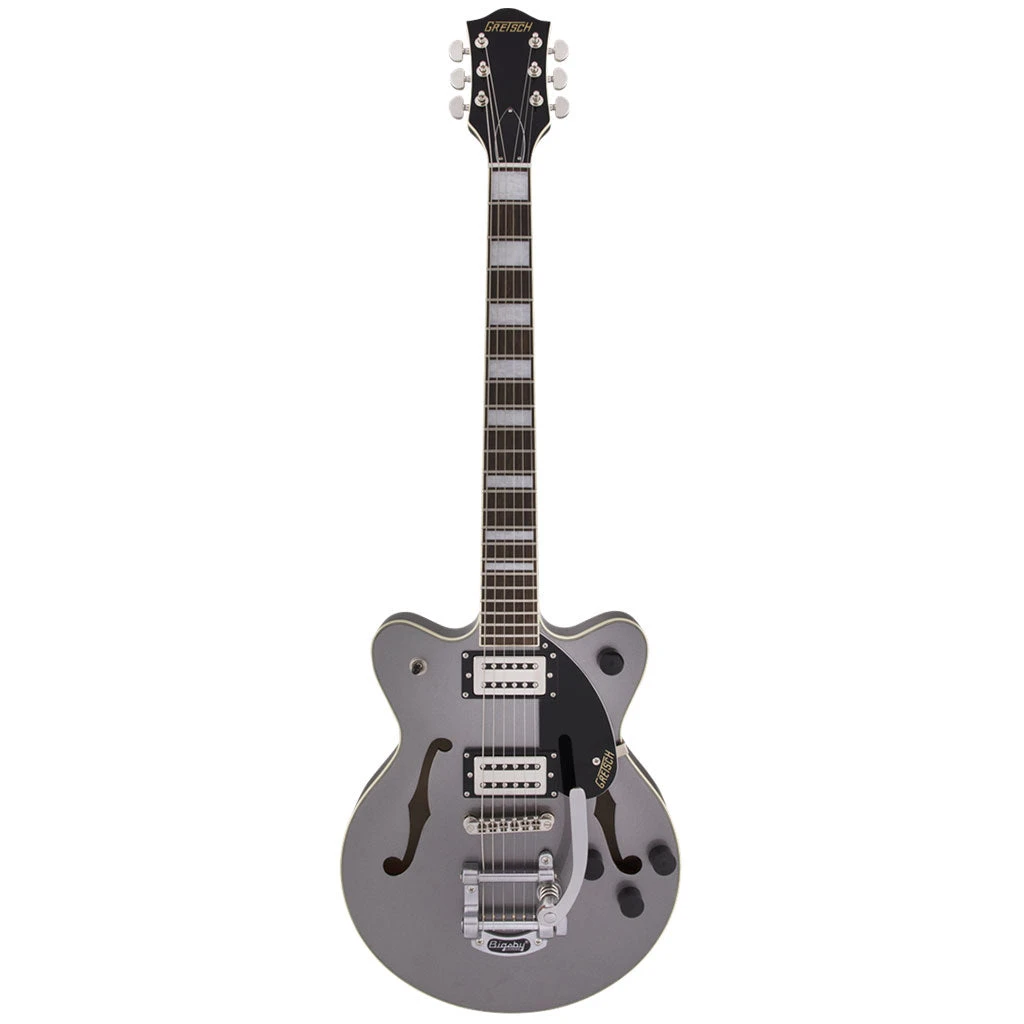 All the classic eye-catching style you’ve come to expect from Gretsch is here—vintage-style black control knobs, enlarged F-holes for acoustic projection, elegant aged white binding with upgraded purfling, slick-looking nickel hardware, three-ply tortoise pickguard and arched laminated maple construction. Easy to play while rocking out thanks to its smaller body, the G2655 is a phenomenal instrument for the modern musician who wants to control the stage and the audience while standing out from the pack.