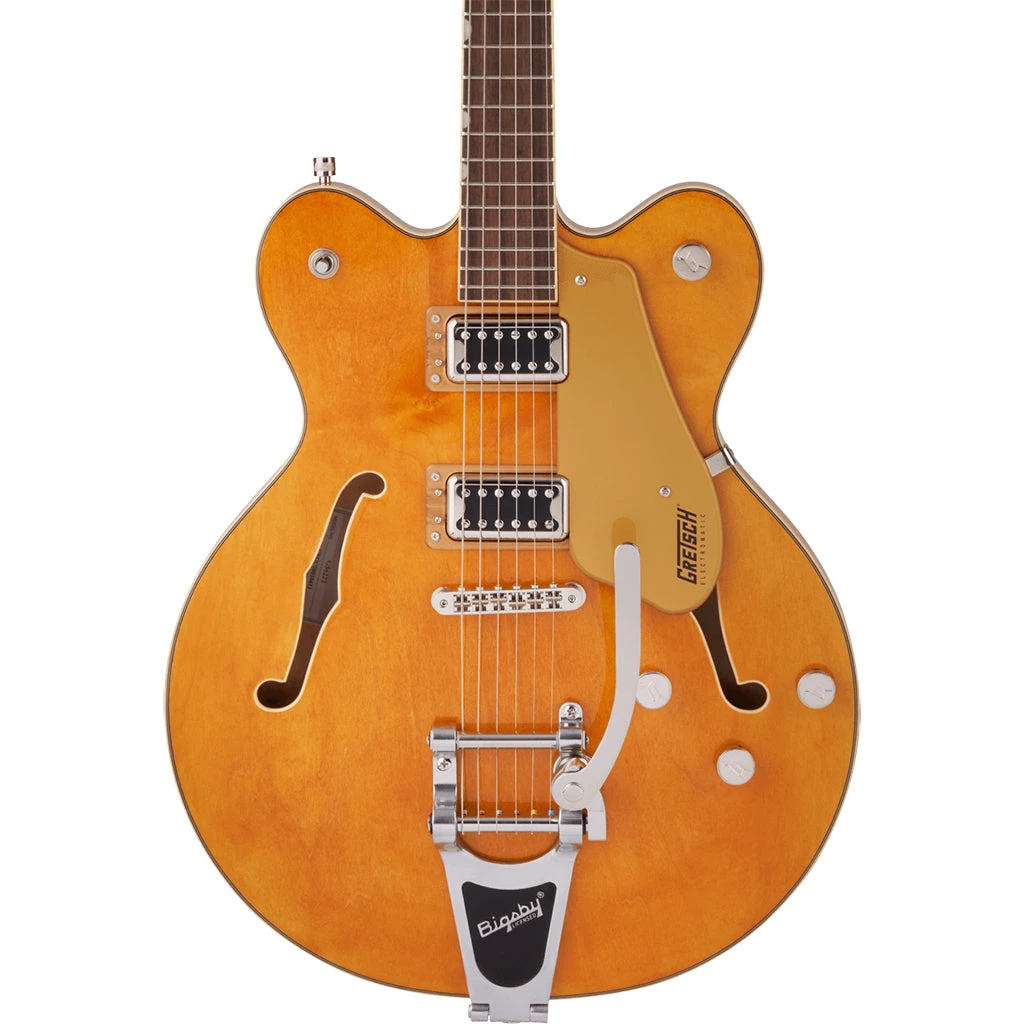 Alive and loud, Electromatic® Center Block guitars are designed for that pure and powerful Gretsch sound at high volume. The G5622T Electromatic® Center Block Double-Cut with Bigsby® features a double-cutaway maple body with chambered spruce center block for dynamic resonance, high gain power and lightweight comfort.