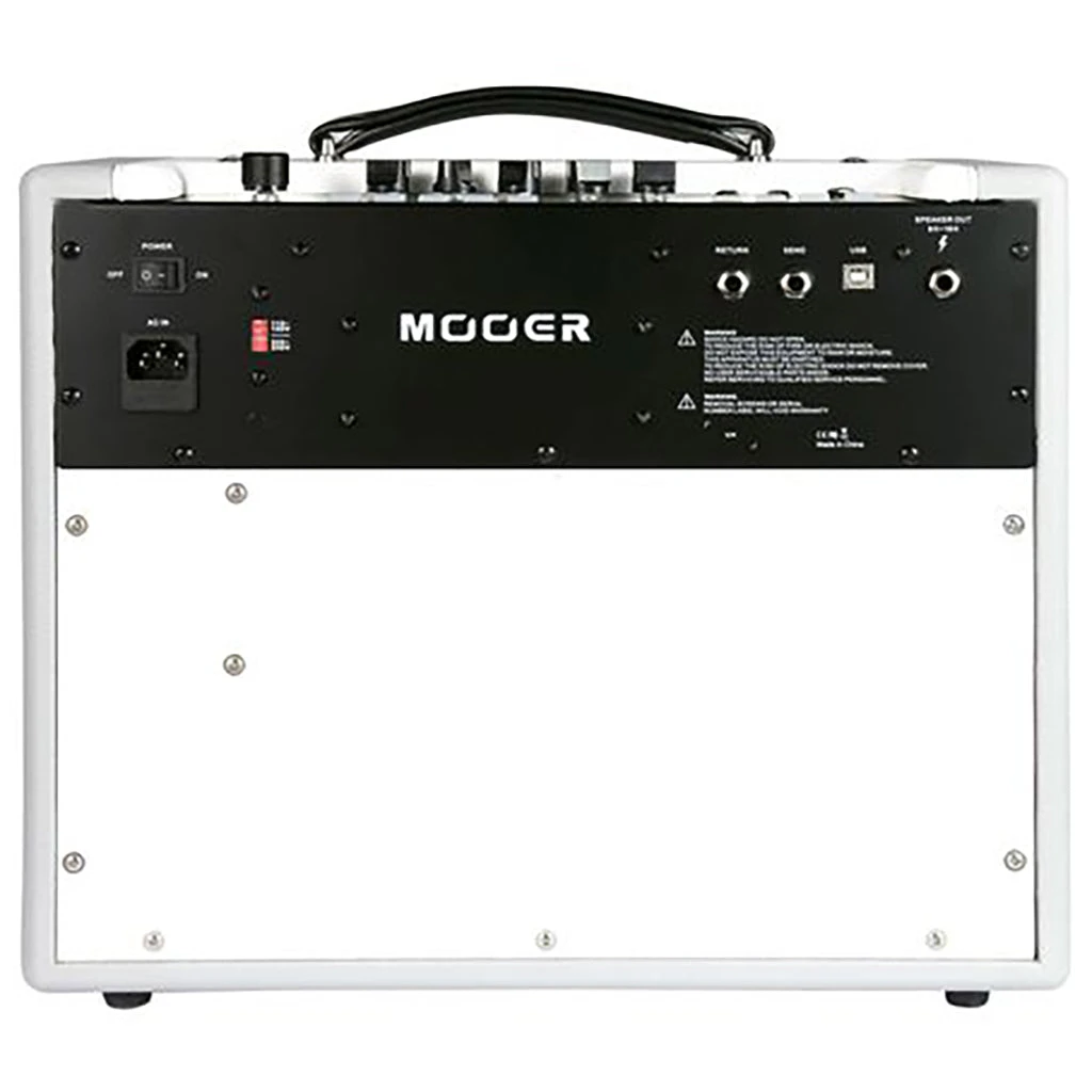 The Mooer SD amplifier series is a harmonious marriage between Mooer’s famous digital preamp technology and a new take on traditional solid-state Class A/B amplification techniques, that deliver professional ‘tube like’ performance, touch and feel, at entry level prices. Each model in the Mooer SD series comes fully loaded with a bunch of special-features and effects (including 8 overdrive and distortion effects, 25 amp head simulations, 9 modulation effects, 5 delay effects and 6 reverb effects), that provide everything you need to craft incredible guitar tones for creating music on-stage or in the practice room. These tones can be stored within 40 preset slots. The SD amps have a unique Jam section that contains a whole suite of tools for solo performers and creative aficionados alike, such as an integrated looper, syncable drum machine and Bluetooth or 3.5mm Aux input connection for playback of your favorite audio tracks from an external device. The Mooer SD30 comes with a 8″ custom-built guitar speaker, designed to deliver rich harmonics and enhanced feel with clarity, articulation and dynamics throughout the amplifiers full volume range