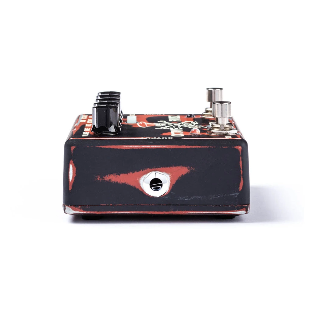 Two legendary and timeless icons of rock music—Slash and MXR—have teamed up to deliver the Slash Octave Fuzz. It features a searing Fuzz tone coupled with a separate Sub Octave voice and an Octave Up Fuzz, all for thickening up your tone with a sinister growl. With an array of external and internal controls, there are numerous ways to combine the main Fuzz effect’s thick ’70s shag and the chainsaw grind of the Octave Up Fuzz with the warm growl of the Sub Octave. Internal Gain and Tone pots shape the Octave Up Fuzz effect. Featuring custom Slash artwork and a distressed hot-rod paintjob, the Slash Octave Fuzz features all analog circuitry, true hardwire bypass and comes in a heavy duty housing with durable jacks and switches.