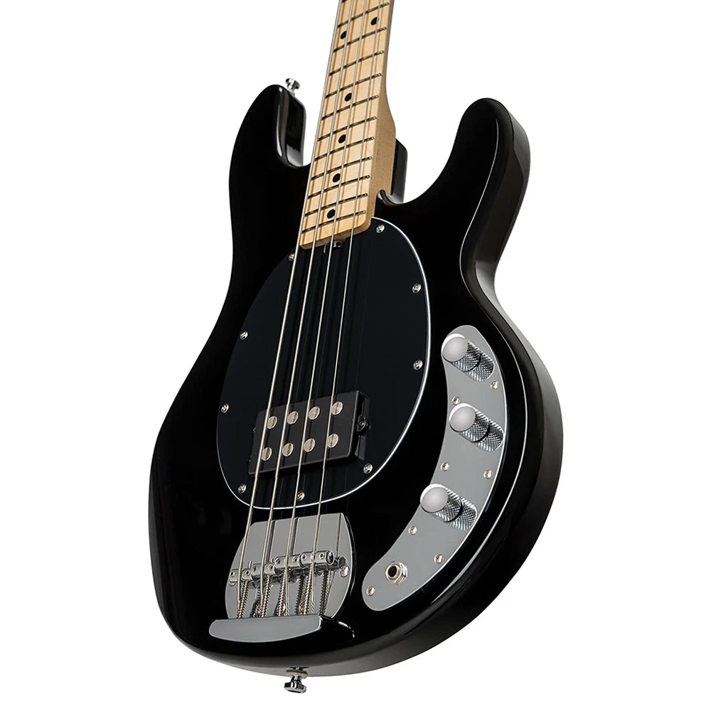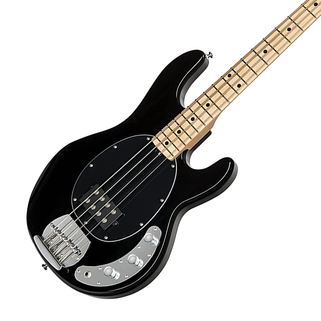 The StingRay Ray4 bass features a 9v active preamp, low noise humbucking pickups, and a fully adjustable heavy duty bridge. This Ray4 comes with a maple fretboard and in Black finish.