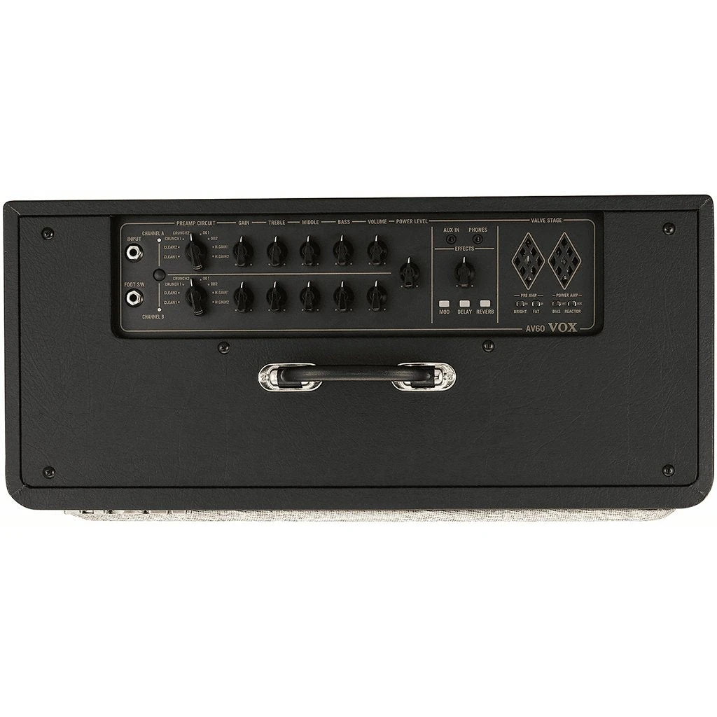 The AV60 is a fully-featured analog amp that packs decades worth of tones into a compact, yet gig-worthy combo. The AV60’s unique multi-circuit analog pre-amp utilizes a 12AX7 tube to provide a full complement of clean, crunch, overdrive, and high gain tones that can be tailored to your liking via the Bright and Fat switches. These classic tones are further enhanced by a customizable, tube equipped analog power section and a unique, sealed speaker enclosure for improved resonance. Rounding out the feature set are three, analog-voiced digital effects including Chorus, Delay & Reverb. The VOX AV60 is perfect for players who need a versatile, affordable, and incredible sounding amp.